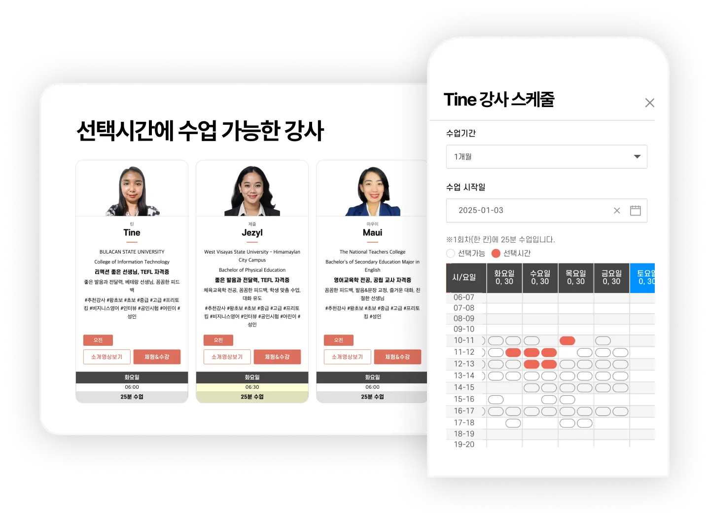 선생님, 수강시간 내 맘대로 선택하자!